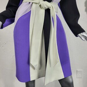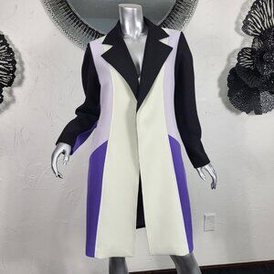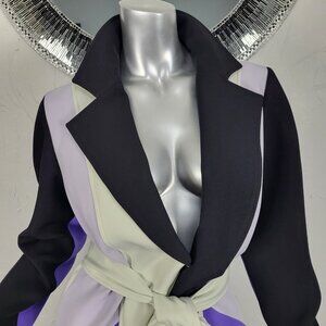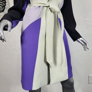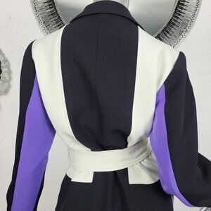 NWT~$695~TOCCIN~SZ S~STUNNING PURPLE BLACK BELTED COLORBLOCK TRENCH COAT JACKET