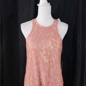 NWT@$70! EXPRESS! SWEET DUSTY MELON PINK LACE SHIFT DRESS, SLEEVELESS! SZ M