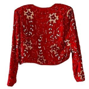 NWT 80’s Vintage Scala 100% Silk Red Heavy Beaded Sequin Bolero Crop Jacket PM