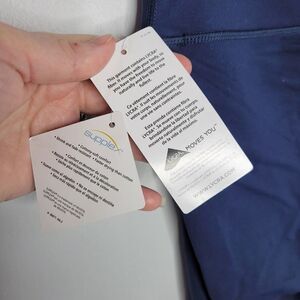 90 Degree by Reflex power flex high waist yoga leggings. Perfect whether you're working out in the gym or lounging at home. These 28 inch high waisted leggings also act as comfortable shapewear that keeps you hugged in and looking slim. Perfect for everything from yoga to a barre or spin class or even making a fashion statement tucked into boots, these shapewear leggings will fit your needs! Color is eclipse. Supplex nylon, lycra.
