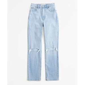 NWT ABERCROMBIE & FITCH Jeans PlusThe 90's Straight Ultra High Rise Busted Knee
