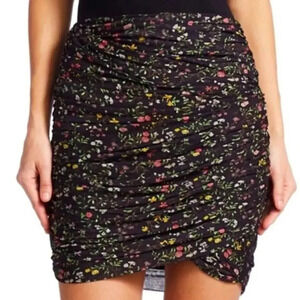 NWT ABOUND RUCHED BODYCON STRETCH SKIRT BLACK DITSEY FLORAL PATTERN SIZE Xs