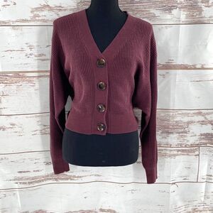 NWT ABOUND Everyday Button Cardigan Burgundy Vine Size Large