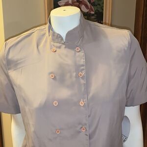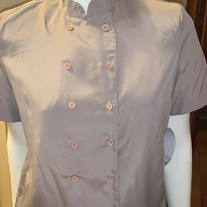 NWT gray double breasted button down blouse. Shoulder pads easily removed. Size 12. Fits medium dark Academia