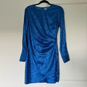 Adelyn Rae blue cheetah long sleeve Isabella draped dress. Excellent condition.