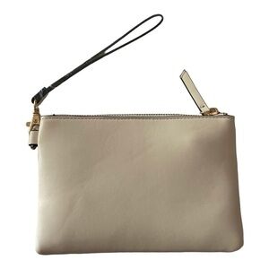 Gorgeous wristlet, removable strap, front open pocket, perfect for cell phone, inside has black interior and one zip pocket, measures 8x6 inches