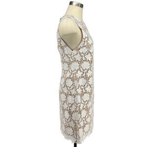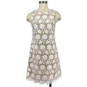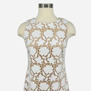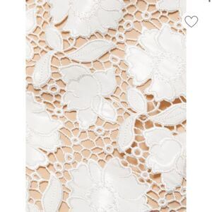 Luxury fashion in lace or crochet style. Classy summer mini dress! Quality material stretches and retightens to hug your shape. Very flattering, as it shows off an hourglass figure before tapering out towards the bottom half of dress. Pairs best with nude or white shoes. Sold out everywhere! Discontinued style. Smoke-free and pet-free home.