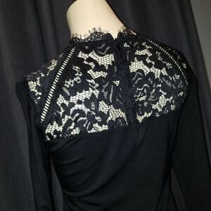 new with tags Floral Lace Sweetheart Inset Long Sleeve Blouse lace