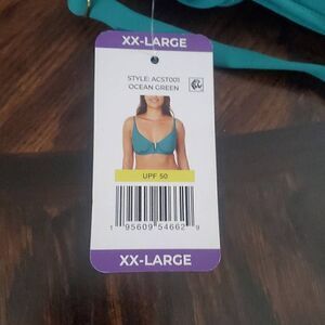 NEW WITH TAGS ANNE COLE BIKINI TOP OCEAN GREEN POMS SIZE XXL