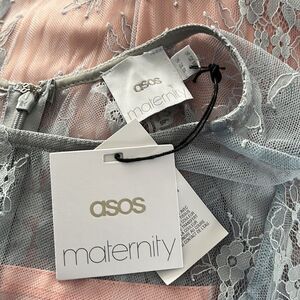 This dress is made by asos maternity. It’s a gray lace with a pink lining. Size 10 and NWT. Smoke and pet free home.