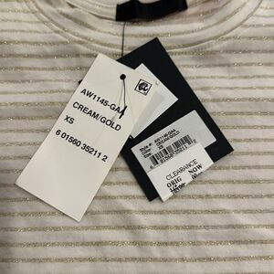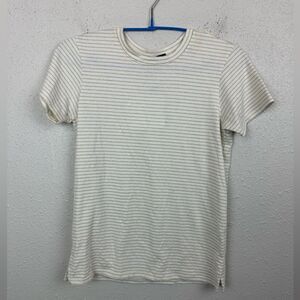 super cute gold striped tee! measures 15 inches armpit to armpit and 22 inches shoulder to hem
