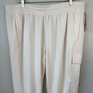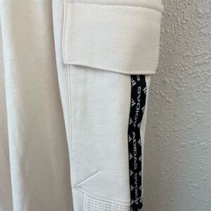 Classic pair of stylish sweatpants by Adidas measuring 20 inches of the waist laying flat and with a 29 inch inseam.