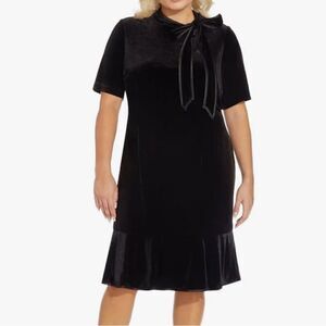 NWT Adrianna Papell Tie Neck Velvet Dress in Black