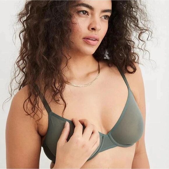 NWT Aerie SMOOTHEZ Full Coverage Unlined Underwire Bra - Dark Green (34C)