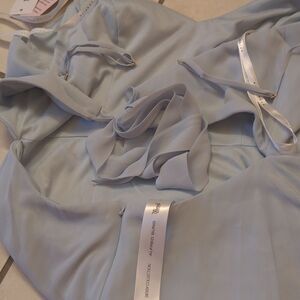 New with tag After Six Maxi Dress Gown Mist Blue Tie Back Leg Slit. Lined. Size 10 please see measurements pictures to be sure of fit.