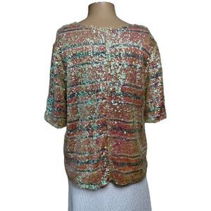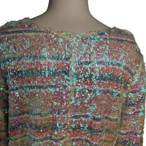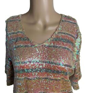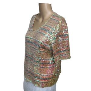NWT Alcoolique sequined top. Sz 38 - US S. Unique top and one of a kind for sure. Two layers - first one is knit striped and second one is sequined nest. Short sleeves. V-neck. Made in Italy. Will be great with everything. Armpit to armpit is about 19”. Length is about 22”