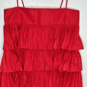 Introducing the stunning Alexis Corsini Dress, a must-have addition to your wardrobe this Valentine's Day. Designed by the renowned brand Alexis, known for their trendy occasion styles crafted with a feminine ease, this dress is perfect for making a statement at any special event. Dressed in a bold ruby hue, this dress features a stunning tiered ruffle design that adds a touch of drama and elegance.