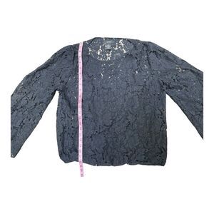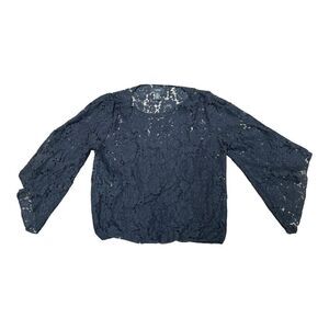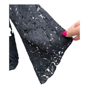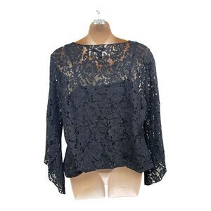 Chic lace blouse with a floral pattern. Perfect for elegant occasions. Comfortable and stylish. NWT Alfani Lace Blouse Bubble Hem Bell Sleeve Size M Elegant Feminine Romantic