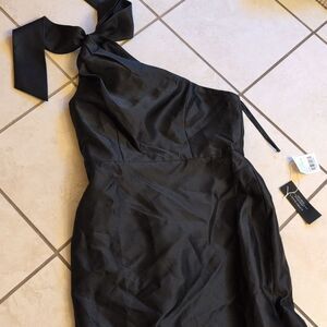 New with tag Alfred Sung style D794 Bow One-Shoulder Satin Trumpet Gown in Black Retail: $242