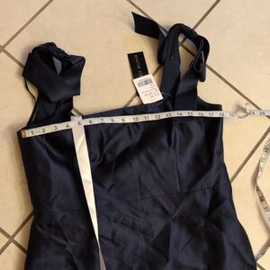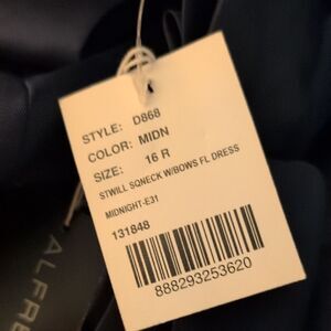 NWT Alfred Sung Satin Fit Flare Maxi Dress Gown Shoulder Bows Midnight Navy 16