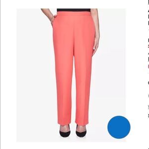 NWT Sz 18 Alfred Dunner Coral stretch slacks, side pockets, slightly tapered legs, 15” rise, 36” elastic waist, 37” long, polyester, rayon, spandex. Pretty, dressy pants, can be paired with a blazer, Career, Work.
