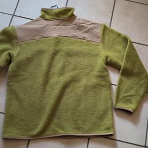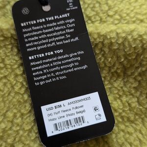 New with tag Allbirds Fluff Fleece Snap Pullover Hazy Lime Hazy Beige. Size L please see measurements pictures to be sure of fit. Retail: $138