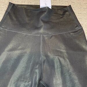 NWT Allfenix Womens Liquid Olive Green Shimmery Pull On 7/8 Leggings Size Small