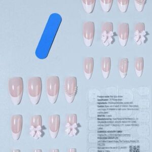 NWT, Almond French & Bowknot Pearl Detail Press On Nail Set