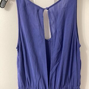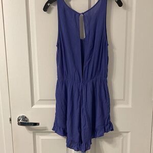 NWT Altar’d State purple romper with V neck, elastic waist, keyhole open back, sleeveless and ruffle at hemline. Size small. 100 rayon. Brand new.