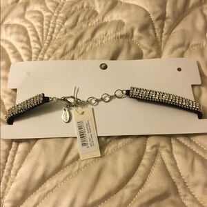 NWT Paris Austrian Crystals choker necklace, 16” w chain extender, silver tone Brass, w black velvet backing. Great for wedding, glam, fashion jewelry.