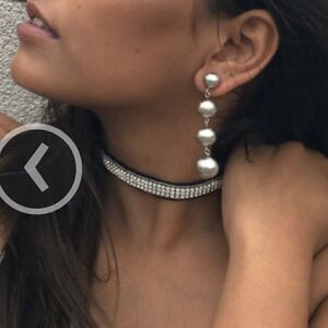 NWT Austrian Crystal, Paris, choker necklace, silver toned with black velvet backing, Brass, w extender chain, great for wedding, glam, fashion Jewelry. 16”