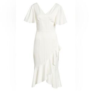 NWT AmyLynn V-neck Ruffle Midi Tea Dress White Size Small