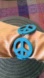 Show your style and individuality with this unique one of a kind bracelet with peace sign beads a dangling peace sign bead & clear beads