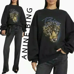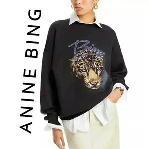 NWT Anine Bing Harvey Leopard Graphic Oversized Sweatshirt