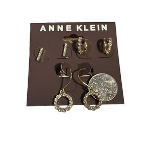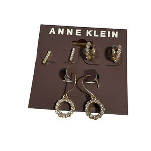 NWT Anne Klein Women's Trio Social Stud/Hoop/Drop Earrings Set in Gold-Tone