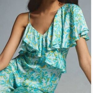 NWT Anthropologie Corey Lynn Calter Silky Ruffle Wide-Leg Jumpsuit-E2