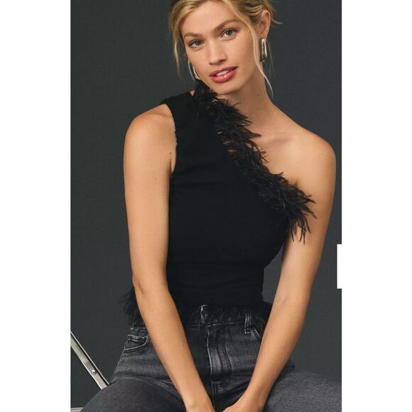 NWT Anthropologie Feathered One-Shoulder Top, Small $100 F8