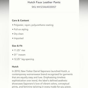 NWT Anthropologie Hutch FAUX LEATHER PANTS Black Size 10