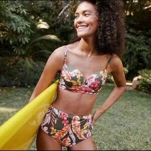 - NWT Anthropologie Sanctuary Ruby Tropical Floral Green Bikini Swim Top