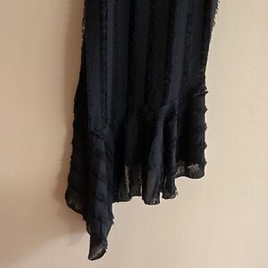 NWT Anthropologie Eri +Ali Black Fringed Asymmetrical Slip Midi Dress size S