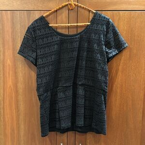 Beautiful black top with lots of details, has cutouts and pleats, perfect as a gift or for parties! Marked XL petite, has stretch.