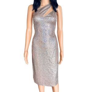 NWT Aqua Formal Gold Sparkly Sequin One Shoulder Dress