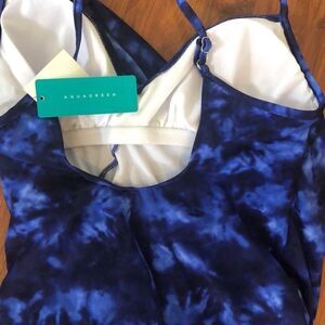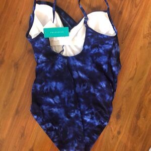 NWT Aquagreen Blue tie-dye ruched waist Cinch waist One piece swimsuit, bathing suit xl