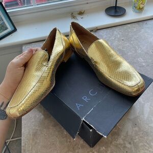 NWT||Archive Italian Leather Gold Loafers with a Alligator look. 9.5
