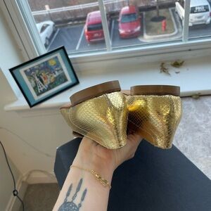 NWT||Archive Italian Leather Gold Loafers with a Alligator look. 9.5The Row Dupe