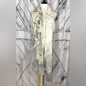 Asan Eye lightweights cotton scarf with fringed ends in ivory and light gray.