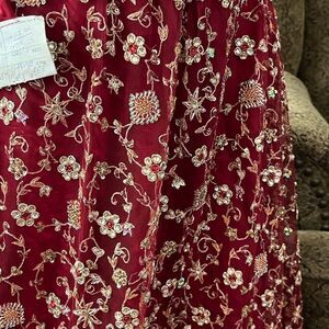 Amazing is the word to describe this hand made Lehenga it is heavy about 3 lbs. L is 38 1/2” waist is 40” adjustable to make smaller. I will be selling the Saree separately. Has no blouse but could be worn with multiple colors. 002