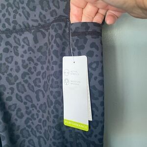 New with tags, Athlux Performance leopard print black gray leggings size medium. Side hip pockets. Rise is 10.5”.