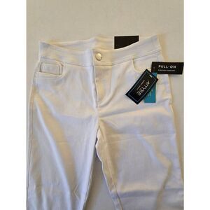 NWT Attyre Women's Audrey Embellished Hem Stretch Slim Ankle Pants White Size 10