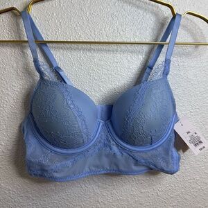 NWT-Auden- Long Line Light Blue Lightly Lined Lace Demi w/ Underwire-Size 34A